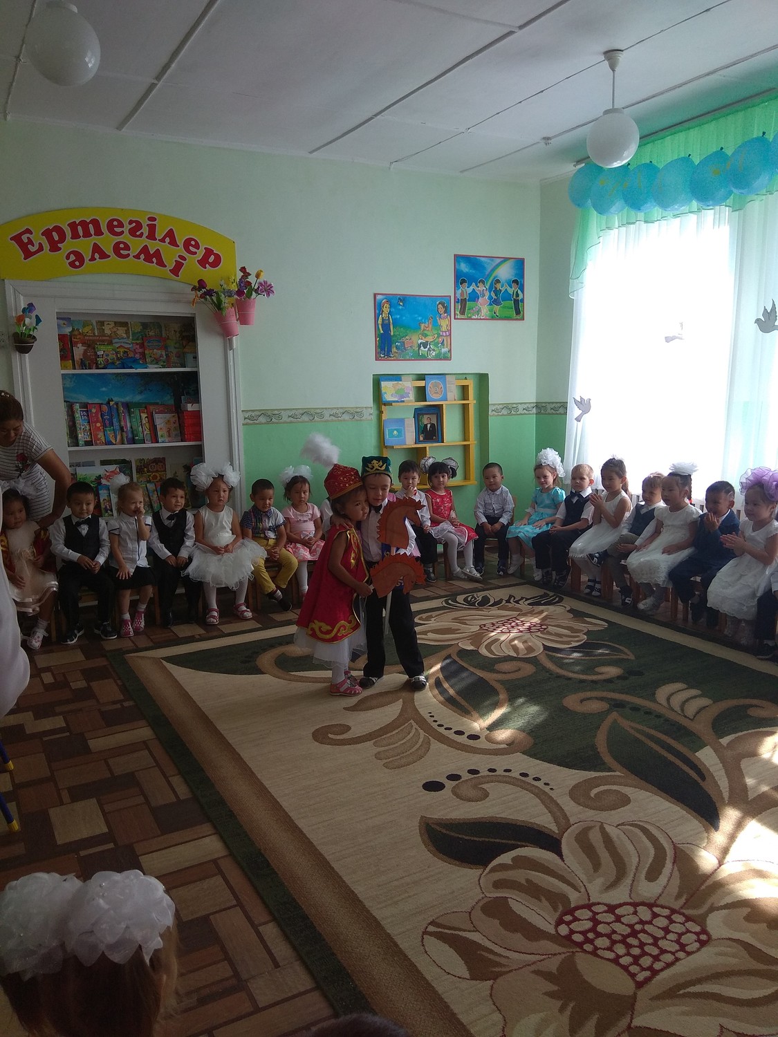 Дети пели, танцевали рассказывали стихи, отвечали на вопросы, называли пословици о Родине, играли в национальные казахские игры.