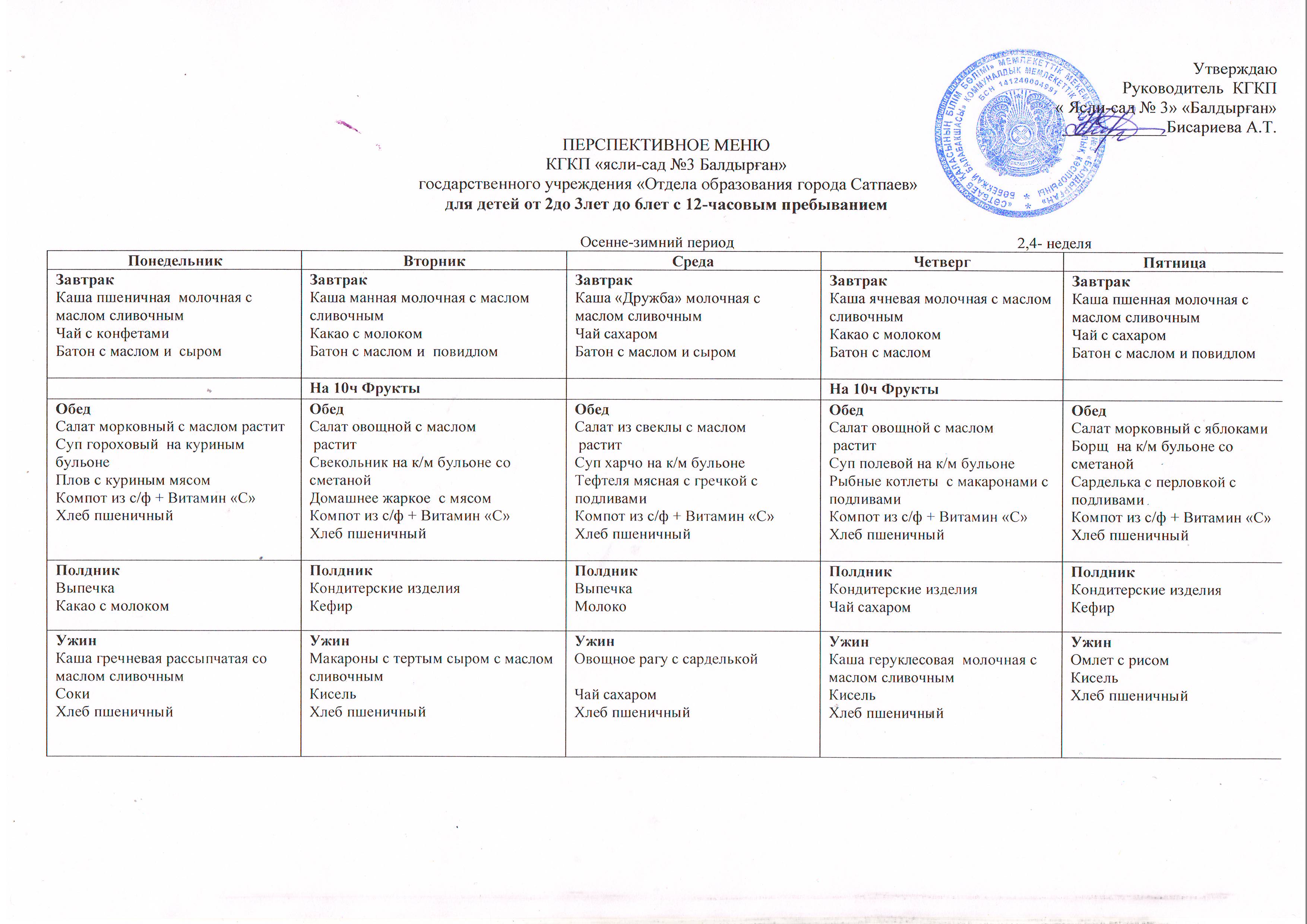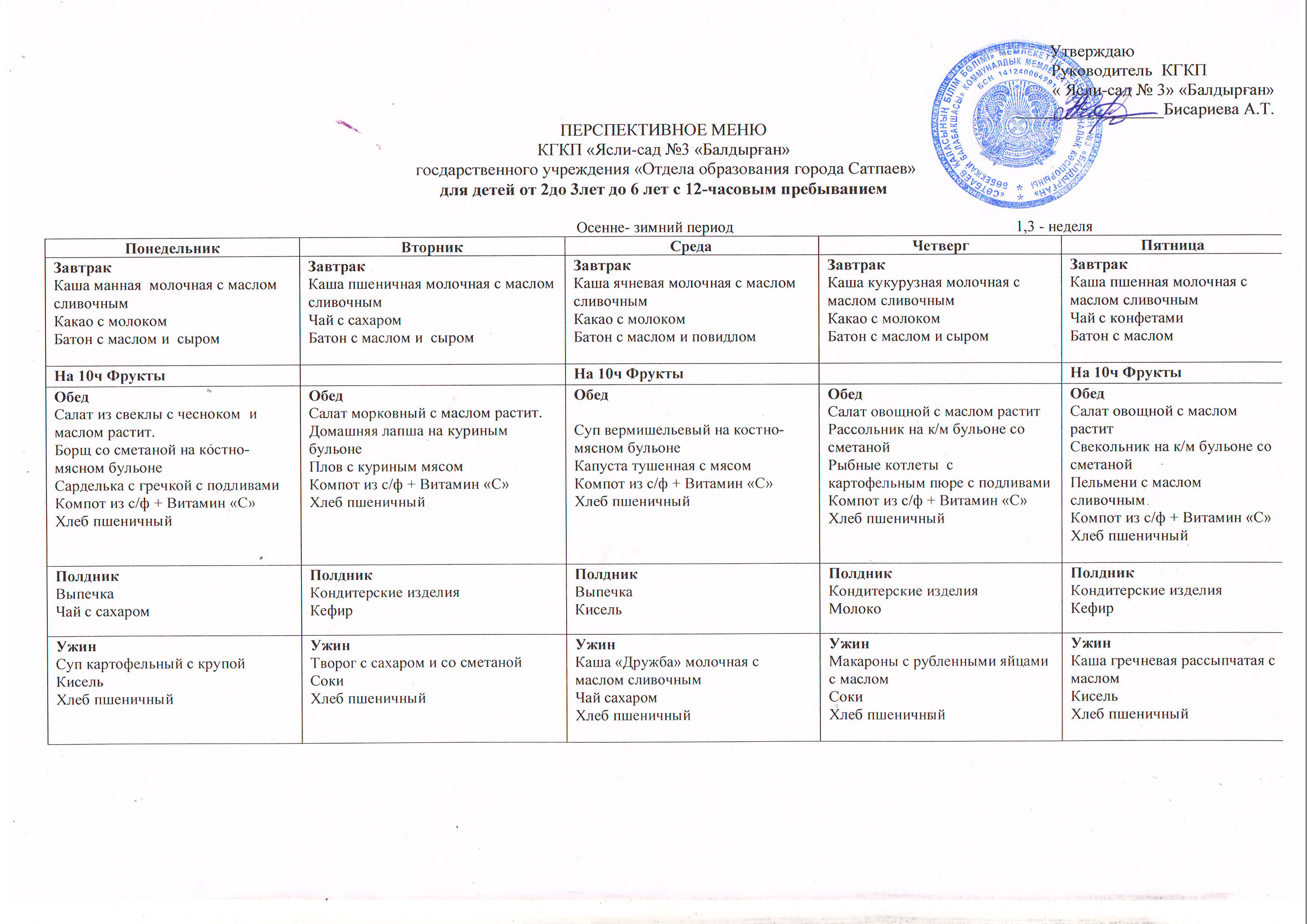 Перспективное меню 3 сад Балдырган Сатпаев